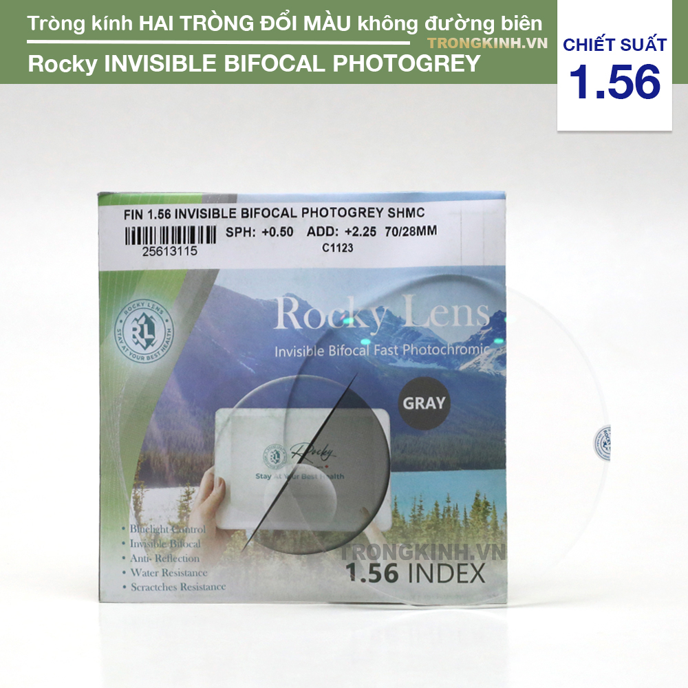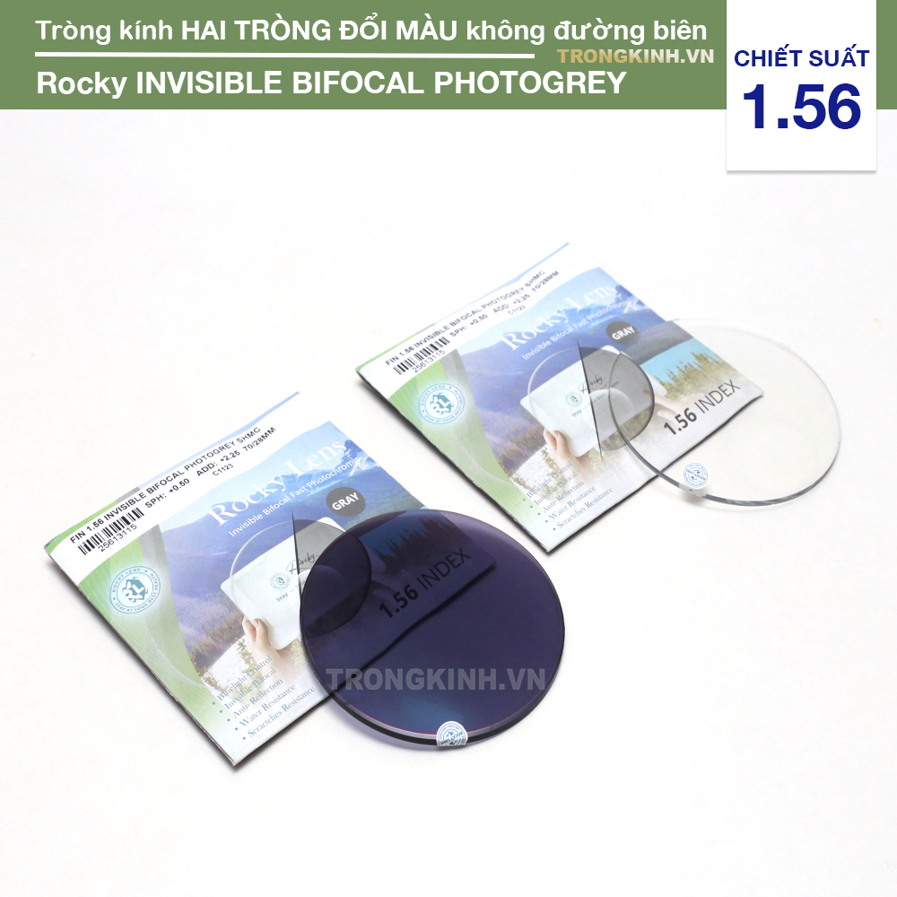 Rocky Invisible Bifocal Photogrey - Tròng kính Hai tròng Đổi Màu Không Đường biênTròng kính hai tròng đổi màu không đường biên Rocky Invisible Bifocal Photogrey mang chất lượng vượt trội bởi công nghệ sản xuất của Canada, vừa mang lại thị lực rõ ràng ở mọi khoảng cách, vừa bảo vệ mắt toàn diện trong mọi môi trường.