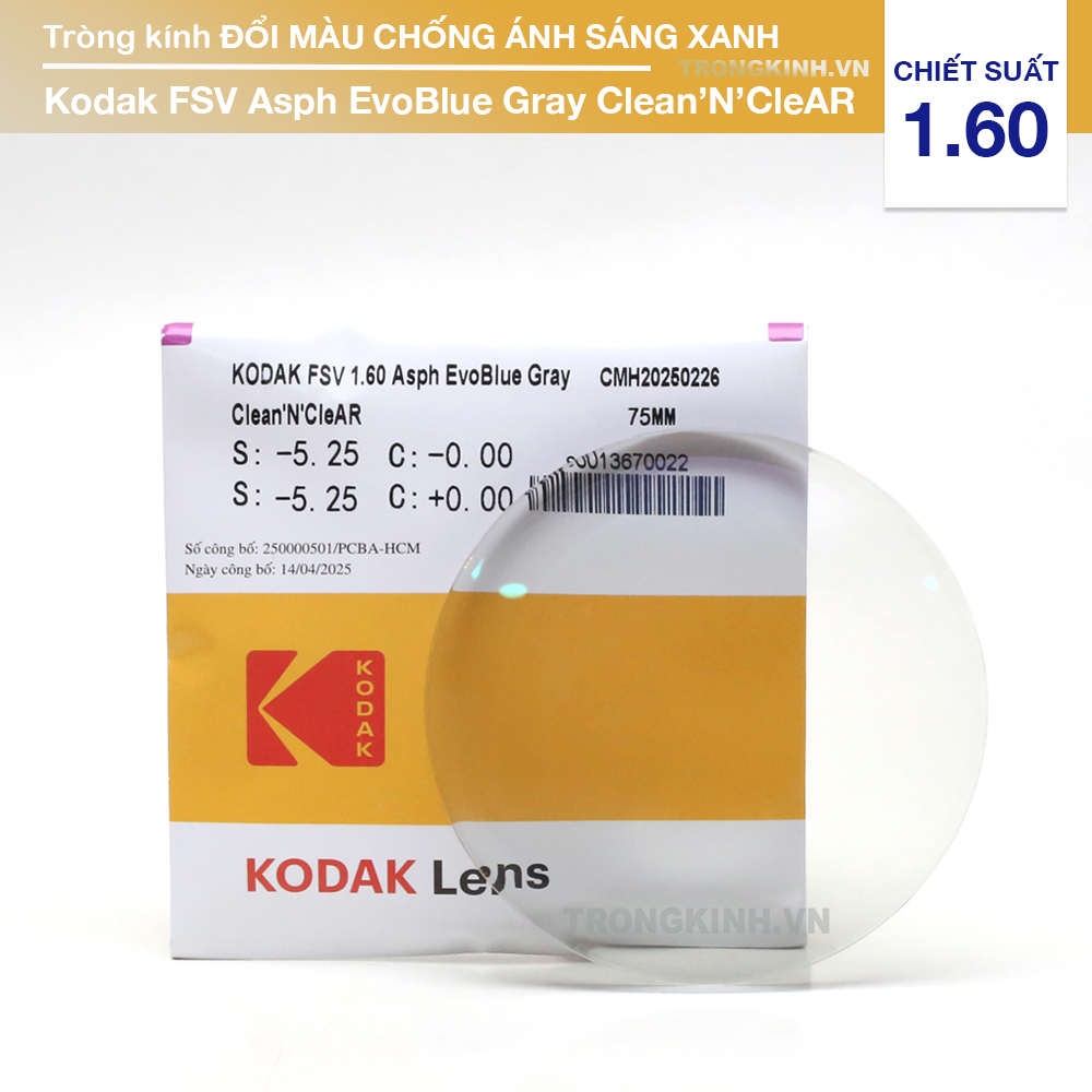 Tròng Kính Đổi Màu Chống Ánh Sáng Xanh Kodak FSV Asph EvoBlue Gray Clean’N’CleAR 160